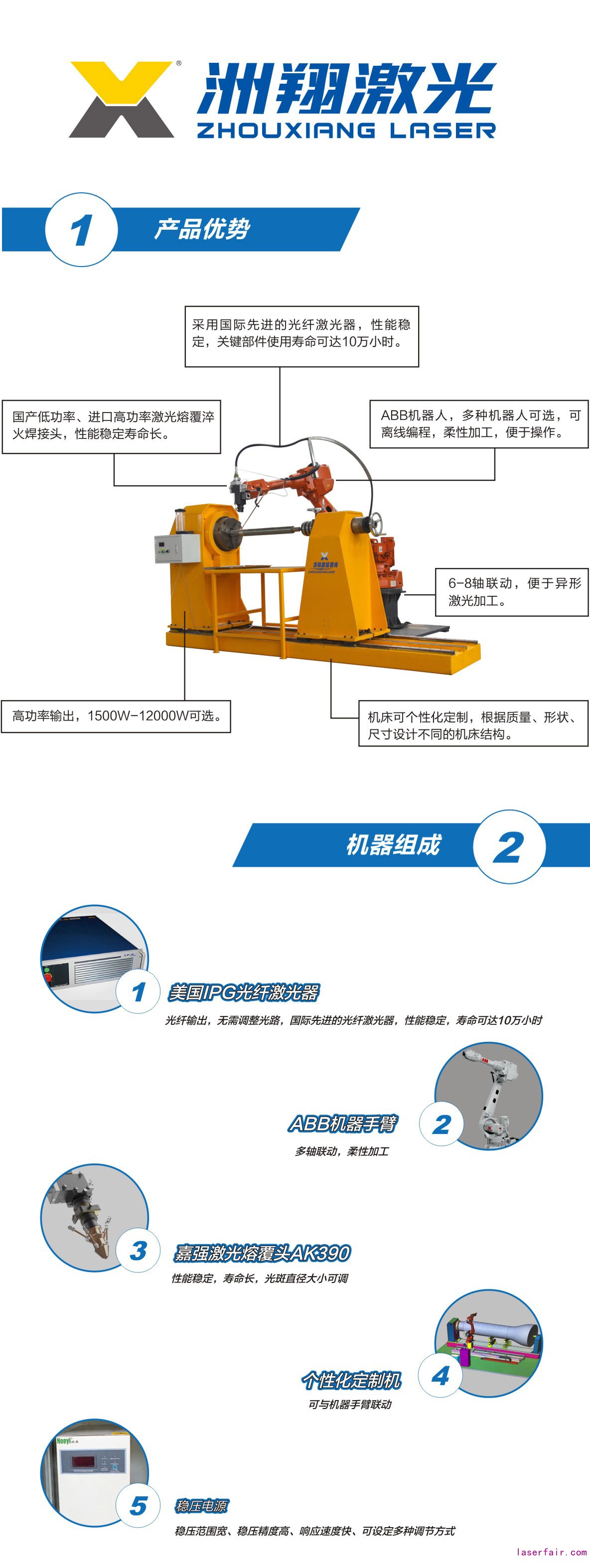洲翔欧陆娱乐研发的欧陆娱乐熔覆淬火设备,用途广泛,实用性强。可以实现汽轮机叶片进气边强化,石油耐磨带欧陆娱乐熔覆,模具工作带淬火强化等