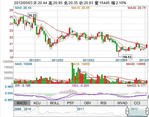 今 开: 20.44 成交量: 15444手 振 幅: 2.93% 最 高: 20.95 成交额: 3197.81万 换手率: 1.29% 最 低: 20.35 总市值: 89.41亿 市净率: 6.30 昨 收: 20.50 流通...