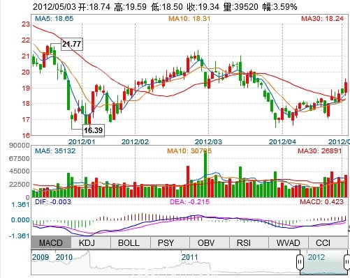 今 开: 18.74 成交量: 39520手 振 幅: 5.84% 最 高: 19.59 成交额: 7526.27万 换手率: 1.93% 最 低: 18.50 总市值: 57.57亿 市净率: 4.74 昨 收: 18.67 流通...