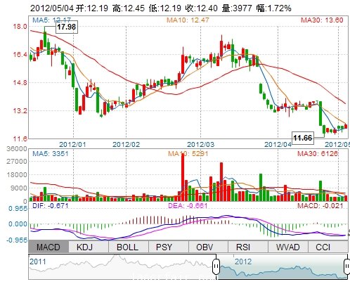 | 今 开: | 12.19 | 成交量: | 3976手 | 振 幅: | 2.13% |