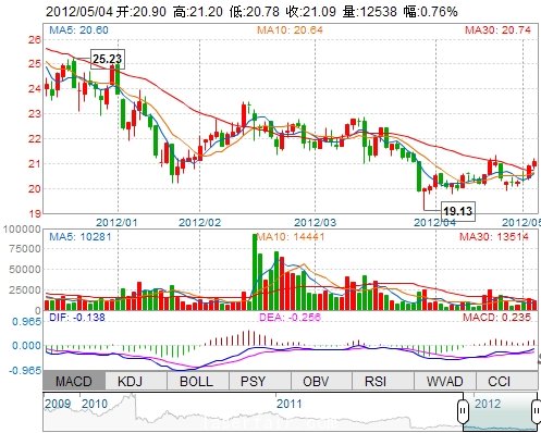 今 开: 20.90 成交量: 12537手 振 幅: 2.01% 最 高: 21.20 成交额: 2634.73万 换手率: 1.05% 最 低: 20.78 总市值: 90.10亿 市净率: 6.35 昨 收: 20.93 流通...
