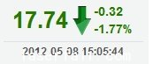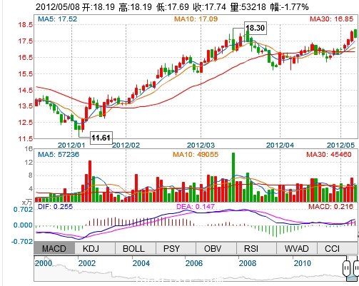 今 开: 18.19 成交量: 53217手 振 幅: 2.77%