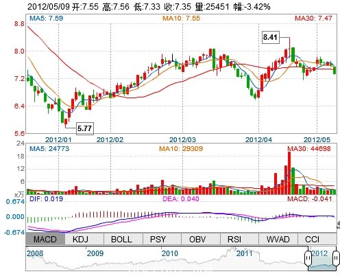 今 开: 7.55 成交量: 25450手 振 幅: 3.02%