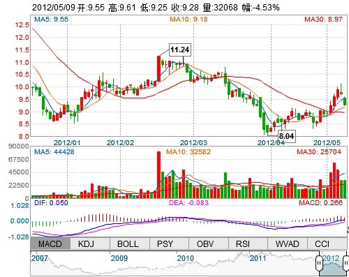 今 开: 9.55 成交量: 32067手 振 幅: 3.70%