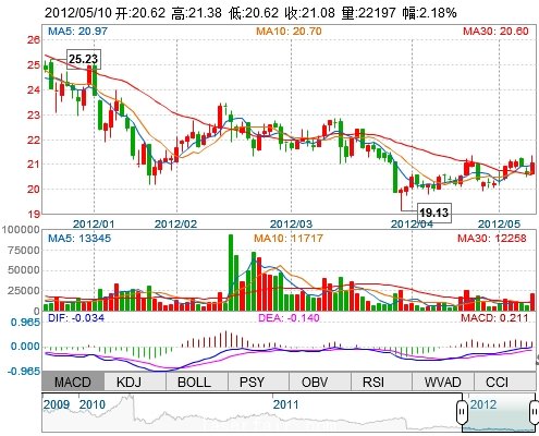 今 开: 20.62 成交量: 22197手 振 幅: 3.68% 最 高: 21.38 成交额: 4705.35万 换手率: 1.85% 最 低: 20.62 总市值: 90.05亿 市净率: 6.35 昨 收: 20.63 流通...