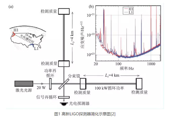 所有这些干涉仪技术措施,都是为了使引力波应变产生的光学信号最大化,从而降低光子散粒噪声。光子散粒噪声是由到达光电探头的光量子的统计涨落引起的,它是欧陆娱乐干涉引力波探测器高频端的主要噪声来源,它对信号信噪比的影响与干涉仪中欧陆娱乐功率的平方根成反比。未来数年,高新LIGO 探测器计划通过增加入射欧陆娱乐功率,把干涉仪中循环的欧陆娱乐功率提高至750 kW,进一步降低噪声[4]。