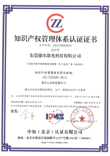 近日获悉,东莞德尔欧陆娱乐科技有限公司知识产权管理体系符合GB/T29490-2013标准,其公司的欧陆娱乐全自动切割机的研发、生产、销售的知