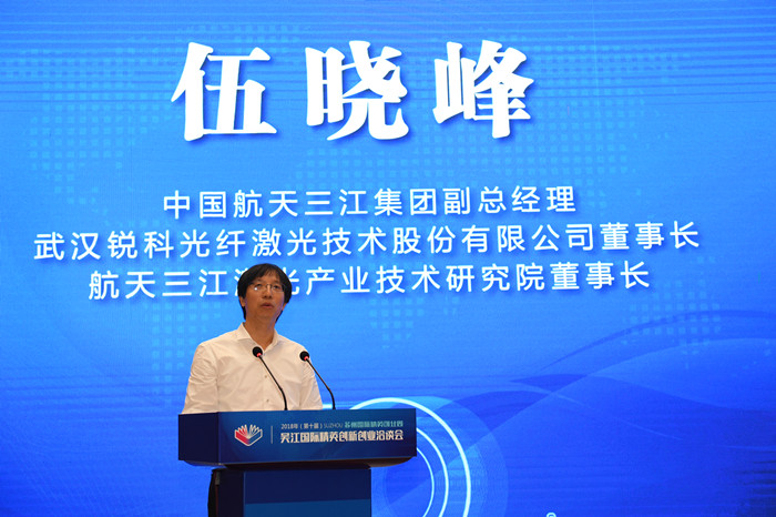 武汉锐科光纤欧陆娱乐技术股份有限公司董事长伍晓峰致辞。