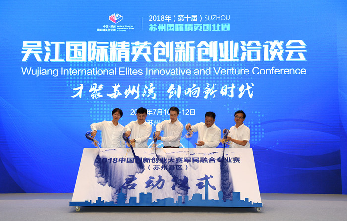 7月11日,2018第十届苏州国际精英创业周----吴江国际精英创新创业洽谈会在吴江宾馆隆重举行,同期举行了中国创新创业大赛军民融合专业赛(苏州赛区)启动仪式和发布会。