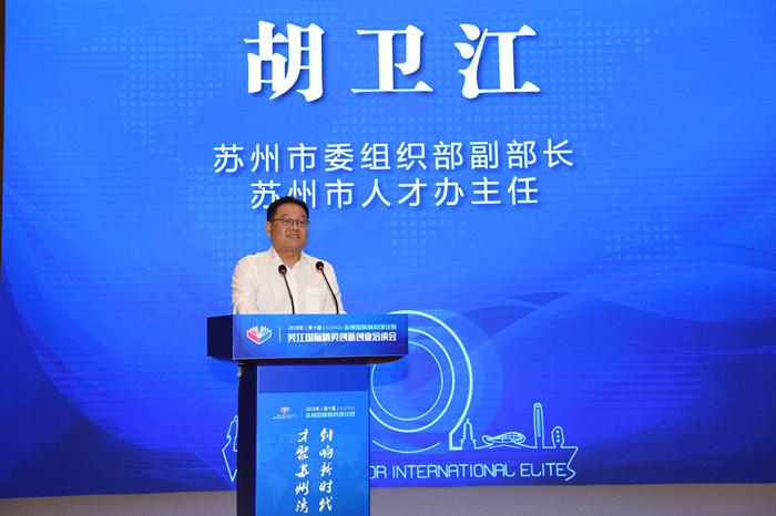 苏州市组织部副部长、苏州市人才办主任胡卫江致辞。