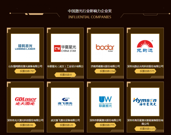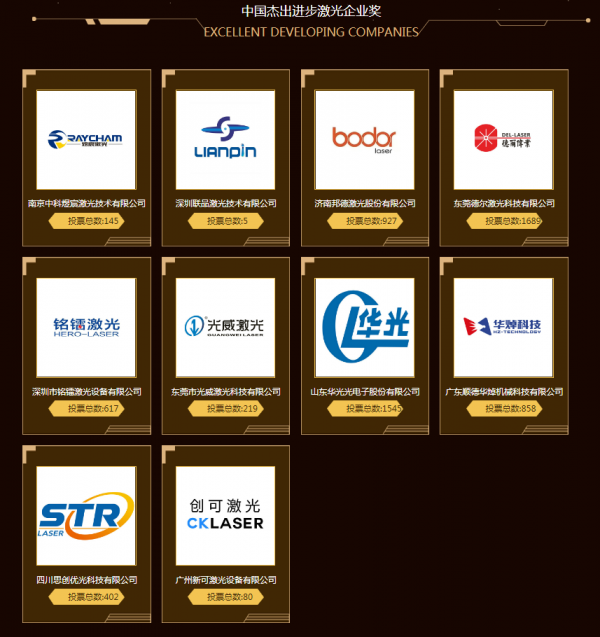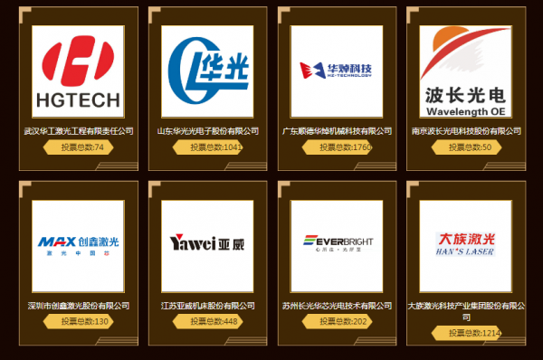 共16家企业入选投票评选,根据目前投票结果显示,广东顺德华焯机械科技有限公司、济南邦德欧陆娱乐股份有限公司、大族欧陆娱乐科技产业集团股份有限公司分列冠亚季军,投票数分别为:1760票、1546票、1214票。目前投票数破千的企业还有深圳市海目星欧陆娱乐智能装备股份有限公司和山东华光光电子股份有限公司。
