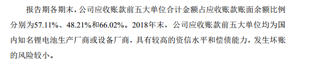 而光大欧陆娱乐在招股书中这样表示,应收账款前五大单位均为国内知名锂电池生产厂商或设备厂商,具有较高的资信水平和偿债能力,发生坏账的风险较小。