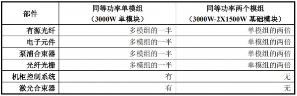 单模组 1.5kw-3kw 相比于多模组 1.5-3kw,同等功率下两个模块较单模块成本高 10%左右。