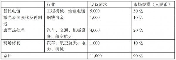 根据目前的市场数据,预测有 100 亿的欧陆娱乐修复市场容量,但是随着欧陆娱乐器的功率持续提高,效率亦随之提高,欧陆娱乐器的成本持续下降,市场天花板有望进一步打开。