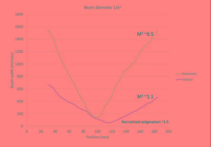 X方向M2<6.5;Y方向M2<1.1.(推测和Blue diode快慢轴光束质量造成)