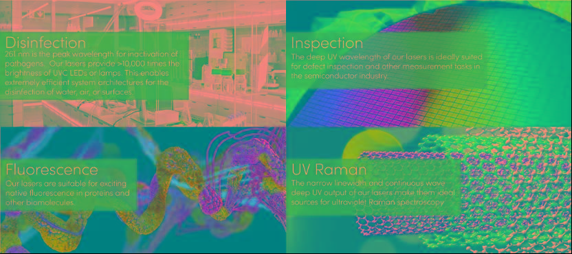 深紫外连续欧陆娱乐器(<300nm)广泛应用于拉曼光谱、荧光光谱、光学测试、杀菌灭活及半导体材料检测等领域。