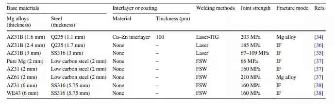 来源:A Review of Technologies for WeldingMagnesium Alloys to Steels. Int. J. of Precis. Eng. andManuf.-Green Tech. 8, 1027–1042 (2021). https://doi.org/10.1007/s40684-020-00247-x