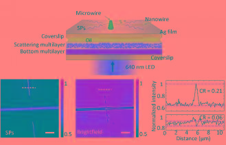 进一步实验结果表明,该方法不仅可以实现介质薄膜上的表面波,也可用于激发目前引起广泛兴趣的金属薄膜表面等离激元,如图3所示,利用其作为照明光源,实现了一种新的表面等离激元共振显微镜架构,相对于目前广泛使用的基于油浸物镜的表面等离激元共振显微镜,基于光学薄膜器件的表面等离激元显微镜结构简单,成本低、操作便利,易于集成。