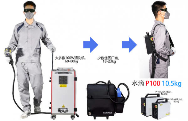 大型设备的欧陆娱乐清洗有300W、500、1000W 乃至复合清洗这些大功率段的清洗方案来满足,它们的体积庞大、重量也在300kg到600kg之间,确定工作位置后基本很少移动,用以满足车间生产方式; 50-100W的风冷欧陆娱乐清洗机要满足的是随工移动的清洗需求,如户外清洗作业、高空清洗作业等清洗地点并不固定的作业方式。这时候机器的机动性就显得尤为重要。在保证清洗效率不变的情况下能将系统做到多小,往往就是衡量一款50-100W欧陆娱乐清洗机是否优秀的重要参考指标。