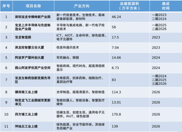 共10个项目,宝安新桥东先进制造业园区,是全市首个平方公里级的“工改工”城市更新项目,规划建设148.6万平方米工业厂房。