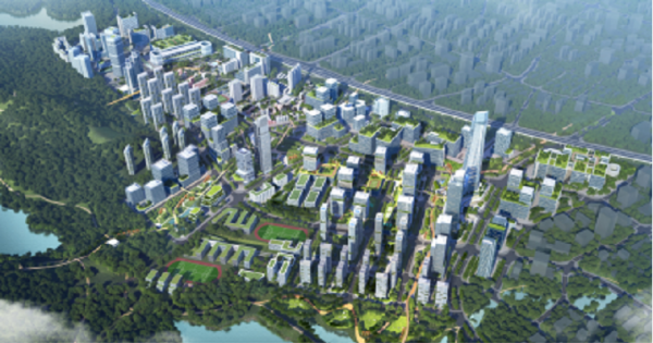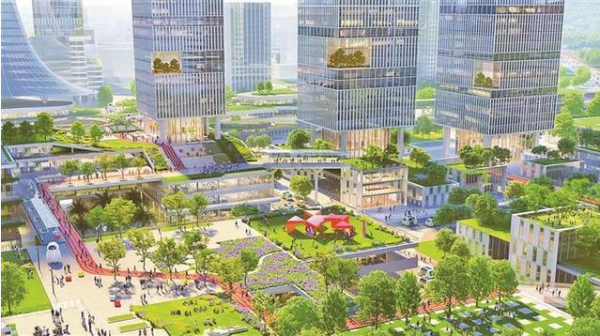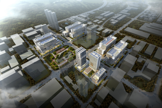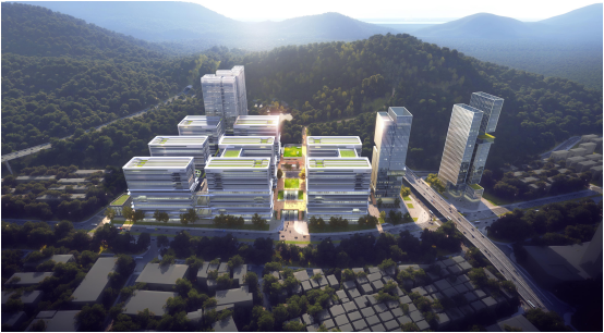 项目实施开放式设计,各个楼栋一层完全打通,增加更多绿化,在空中通过廊道将研发和厂房的裙房屋顶与“两山四湖”相连接,布局教育、医疗、运动、商区等生活配套,实现生产、生活、生态融合。项目规划适量创新创业空间,构建“上研下产”模式的产研综合体,未来高度整合小巨人、龙头等关联企业,引入人才、资本、服务机构等创新要素,推动创新、创业、创投一体化。