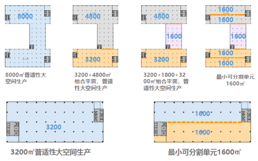 南山红花岭基地,高标准厂房园区典型代表。南山智造红花岭基地位于南山区桃源街道留仙大道南侧。项目用地面积约11.8万㎡,开发规模约78.2万㎡,容积率6.6。其中高标准厂房占总建筑面积一半以上,单栋厂房高度近90m,层数16层,各项指标超过其他地区标准。原业态为老旧工业厂房,建筑面积约27万㎡。通常,制造业企业不愿“上楼”的原因有:重型设备不易上楼,厂房楼板荷载要求高,高层货梯难达标,货运效率低。该项目在这些难点上均有所突破。一是层面布局按照“可拆可合”要求,设计出“C字型”“一字型”两种厂房结构,尽可能保障流水线长度。其中,C字形标准层面积达8000㎡,一字形标准层分别为3000㎡、5500㎡、8000㎡。各类厂房可灵活分拆成1600-8000㎡不等单元,保证了不同业态企业的生产需求。