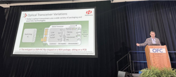华工正源研发副总裁Jim Theodoras受邀出席IPEC论坛,并就PIC在光模块中的应用发表了演讲。 大型数据中心运营商正在推动数据通信速度的空前增长。华工正源研发副总裁 Jim 指出,随着所需带宽的增加超出单个串行通道的响应能力,业界已将重点转向网络并行和波分复用,以实现更大的聚合带宽。这反过来又进一步增加了光学链路的复杂性,超出了分立光学的范围。 03 可插拔光模块和CPO都需要PIC技术来支持交换网络的不断升级。Jim总结道,光子集成电路不再是一个研究课题,而是满足未来数据通信需求的必要产品。华工正源基于市场需求,不断推出更高性能、更高带宽、集成度更好的PIC以及封装技术。