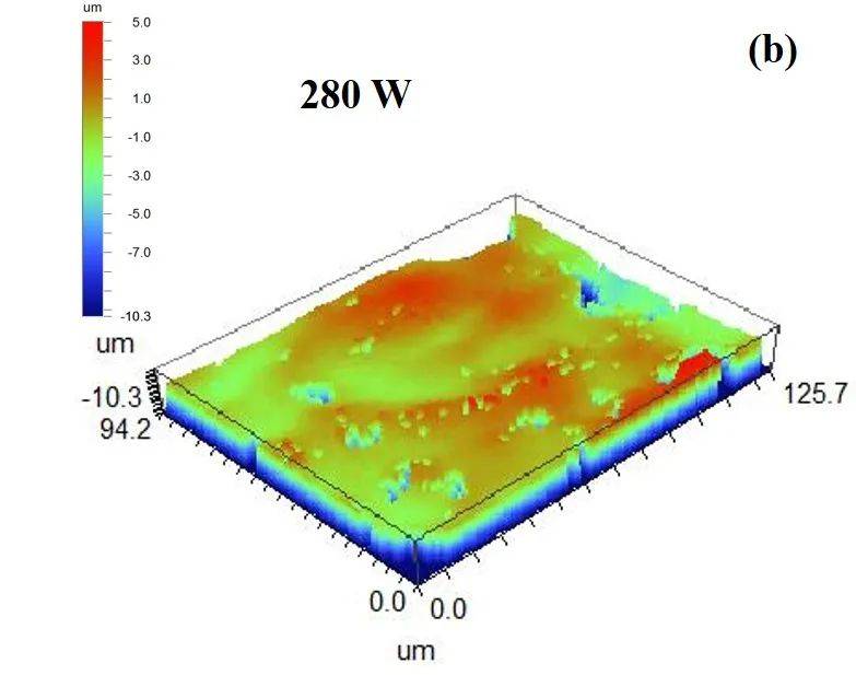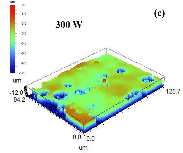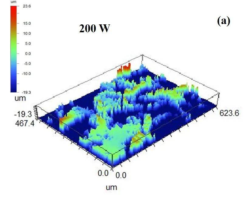 图10腐蚀样件欧陆娱乐清洗后的3D形貌(a)200W;(b)280W;(c)300W;(d)8kHz;