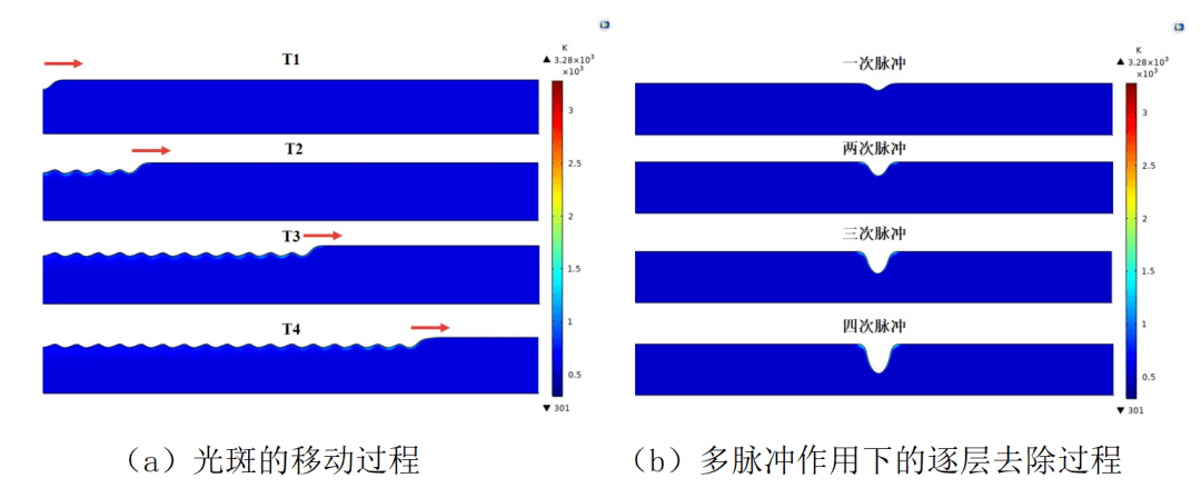 欧陆娱乐清洗锈蚀氧化物的过程实际上是依靠光斑的往复移动,当氧化物层温度达到自身熔化或者气化温度时,氧化层材料会因相变发生熔化分解、气化蒸发等效应,并实现逐层去除的过程,如图1所示。