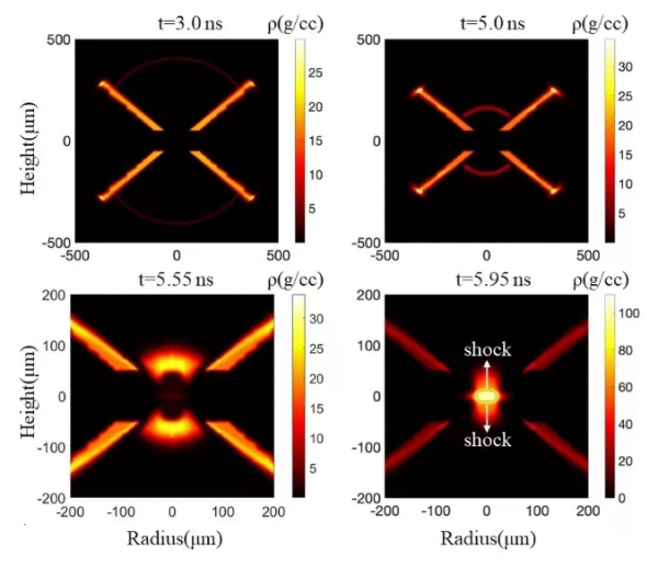 图2 MULTI-2D程序获得的等离子体内爆密度演化图像