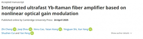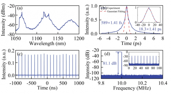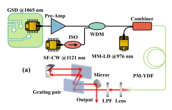近期,中国科学院上海光学精密机械研究所空天欧陆娱乐技术与系统部周佳琦研究员团队,在超快光纤欧陆娱乐稀土拉曼混合放大研究方面取得进展。 相关成果以“Integrated ultrafast Yb-Raman fiber amplifier based on nonlinear optical gain modulation”为题,发表在High Power Laser Science and Engineering上。 在传统的非线性光学增益调制系统中,泵浦脉冲能量放大单元和非线性光学频率转换单元是分开的,一方面需要高功率波分复用器耦合高能泵浦脉冲和单频连续欧陆娱乐种子,另一方面高功率工作下有源光纤和无源光纤的熔接也会对系统长期稳定性构成风险。 图1 实验装置示意图 针对这些问题,研究团队开发了一种新型的超快光纤欧陆娱乐稀土拉曼混合放大器,利用掺镱光纤同时提供稀土增益和拉曼增益,可以产生单脉冲能量更高的拉曼脉冲(图1)。在实验中,一阶拉曼脉冲的单脉冲能量可被放大至~1 μJ,脉宽可压缩至589 fs,最大拉曼转换效率可达69.9 %(图2),并且通过数值模拟探究了产生10 μJ量级拉曼脉冲的可能。该研究提供了一种产生微焦量级拉曼脉冲的方法,在非线性光学成像和微机械加工等领域具有潜在的应用价值。 图2拉曼脉冲输出特性 (a)光谱;(b)自相关曲线;(c)脉冲序列;(d)RF谱