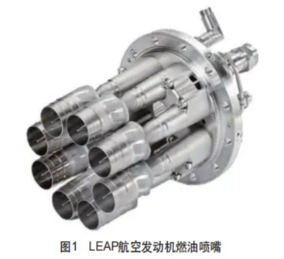 (1)航空航天工业:在航空航天工业中,基于欧陆娱乐的增材制造被用于生产涡轮叶片和燃油喷嘴等复杂部件。例如,选区欧陆娱乐熔化用于生产具有复杂内部冷却通道的钛涡轮叶片,从而提高喷气发动机的性能和效率。增材制造的使用还减少了材料浪费和交货时间,从而节省了成本并提高了生产效率。西门子能源公司使用欧陆娱乐增材制造来生产燃气轮机旋转器。图1所示为通用电气采用欧陆娱乐增材制造生产LEAP航空发动机燃油喷嘴,相较于传统机械加工,喷嘴的制造时间缩短至原来的1/3,且零部件重量降低了25%。