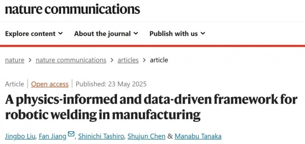 近日,北京工业大学陈树君教授团队的研究成果《A physics-informed and data-driven framework for robotic welding in manufacturing》在《Nature Communications》发表,这是北工大机械与能源工程学院以第一完成单位在《Nature》子刊发表的首篇论文,标志着学校在机械工程领域取得重要进展。北京工业大学为论文第一完成单位,机械与能源工程学院蒋凡教授为本文唯一通讯作者,博士后刘靖博为唯一第一作者,陈树君教授、大阪大学接合科学研究所田代真一教授和田中学教授为共同作者。