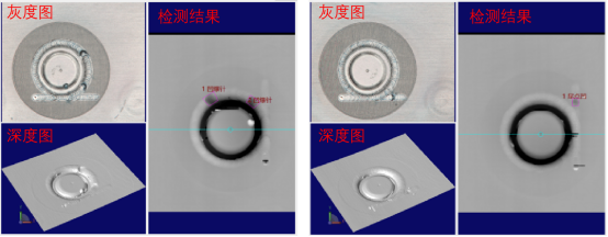 大族视觉在该密封钉检测项目中,将配准后的2D图像和3D图像同时送入深度学习网络,模型同时学习RGB的形态颜色纹理特征以及3D图像中的深度形态特征,避免了单一传感器物理原理上的缺陷,图3是密封钉多模态缺陷检测的结果。