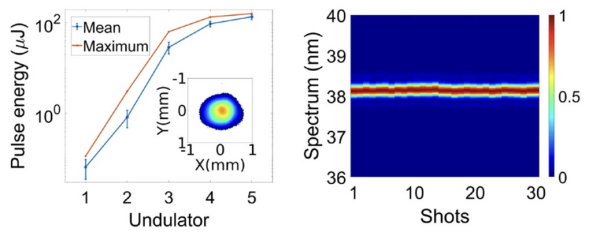 相关研究成果以First Lasing and Stable Operation of a Direct-Amplification Enabled Harmonic Generation Free-Electron Laser为题,发表于《物理评论快报》(Physical Review Letters)上,并被选为“编辑推荐”文章。
