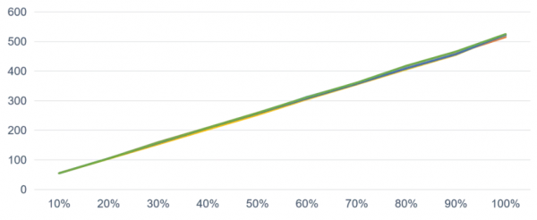 同时,由于3D打印设备多为多光源作业,因此多台光源的光束质量一致性又尤为重要。通过从产线随机拉取的百台3D打印专用光源出厂测试数据显示,该系列光源全部稳定在1.0至1.1之间,一致性极强。