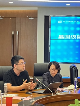 舜宇奥来技术的徐国冉厂长作了题为“晶圆级微纳光学的综合解决方案”的报告,介绍了公司的发展历程、创立初衷、核心产品的竞争优势及其广阔的应用前景。其中,关于AR光波导眼镜片的介绍引起了与会代表的浓厚兴趣,在互动环节参会人员就相关技术问题和应用推广进行了深入研讨。