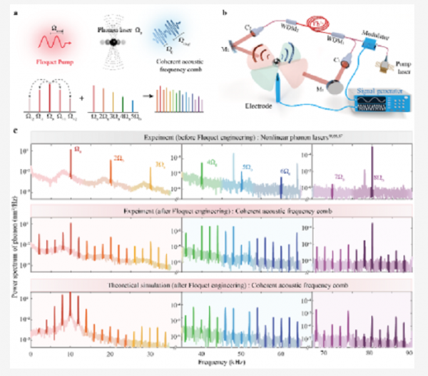 近日,国防科技大学前沿交叉学科学院某团队联合理学院,提出将Floquet调控技术应用于非线性声子欧陆娱乐中,成功产生了国际上首个声子欧陆娱乐频率梳,预期在高分辨率声学传感、相干声信息处理及拓扑声子学等领域具有广阔的应用前景。研究成果以“基于Floquet工程的声子欧陆娱乐频率梳(Coherent acoustic frequency comb via Floquet engineering of optical tweezer phonon lasers)”为题发表在国际顶级期刊《科学进展》(Science Advances)上。