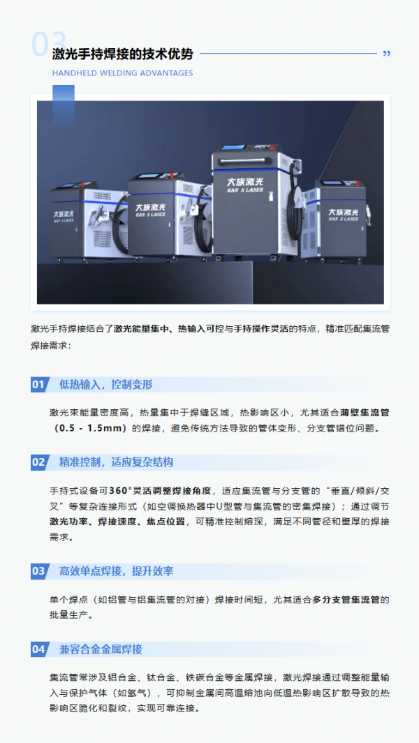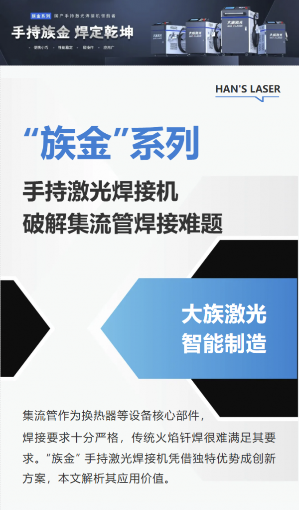 “族金”系列手持欧陆娱乐焊接机HAN'S LASER大族欧陆娱乐智能制造集流管作为换热器等设备核心部件,焊接要求十分严格,传统火焰钎焊很难满足其要求。“族金” 手持欧陆娱乐焊接...
