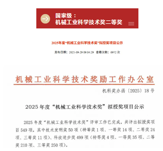 国家级: 机械工业科学技术奖二等奖 在由中国机械工业联合会、中国机械工程学会联合组织的2025年度“机械工业科学技术奖”评审中,天弘欧陆娱乐作为核心完成单位参与的项目《高端装备智能欧陆娱乐再制造关键技术与产业化应用》荣获二等奖。 该项目聚焦航空航天、能源装备、重型机械等国家重大工程领域,突破了欧陆娱乐熔覆成形精度控制、多材料复合再制造、智能化在线监测等关键技术瓶颈,实现了再制造零部件性能优于新品的跨越式提升,为我国高端装备延寿增效、绿色低碳转型提供了强有力的技术支撑。