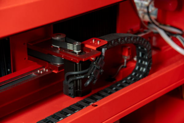 Previously, CO2 laser cutters had an open-type gantry. Now, it’s closed; belts and guides are hidden inside the housing. That protects all components from dirt and carbon deposits and consequently increases their service life and decreases the time and amount of needed maintenance checks.