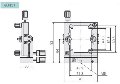 主要特征: ●两维正交共面倾斜调整,光程保持不变; ●可绕光轴旋转; ●三个旋转自由度分别具有锁紧装置; ●细牙螺杆调整,调整精确舒适; ●可装卡两种尺寸的平凸或平凹柱面镜。 技术指标: 两维倾斜调整 θy ±4° θz ±4° 旋转调整范围 θx ±5° 装卡长度(mm) 50~50.8 装卡宽度(mm) 60.5 自重