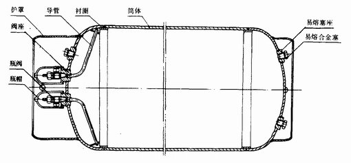 瓶内装有多孔填料及溶剂,用于充装乙炔的气瓶。