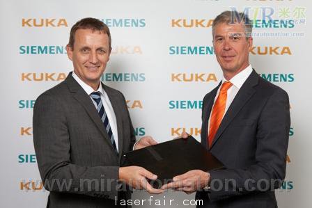 在2013年汉诺威国际机床展览会上,西门子工业业务领域驱动技术集团与库卡机器人有限公司宣布双方将展开全面业务合作。合作的主要内容是集成库卡机器人与西门子数控机床技术,开发和推广用于数控机床上下料机器人的解决方案。“两家公司通过这种合作方式强化了集成生产的基本理念,使机床任务与上下料等工件传送任务融为一体,全力进军新市场”,库卡机器人有限公司CEO Manfred Gundel 表示。“西门子数控技术与库卡机器人控制技术的集成方案是这个领域里的最佳搭档。这次合作是我们多年合作关系的延伸,并有力推动了‘工业4.0’计划中提出的智能自动化解决方案的向前发展,双方都将从中获益并拓展了业务范围”,西门子工业业务领域驱动技术集团运动控制部首席执行官 Robert Neuhauser 博士说道。