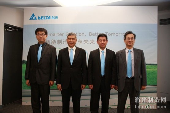 ▲台达集团-中达电通副董事长尹镟博先生、台达董事长海英俊先生、执行长郑平先生、资深副总裁暨机电事业群总经理张训海先生