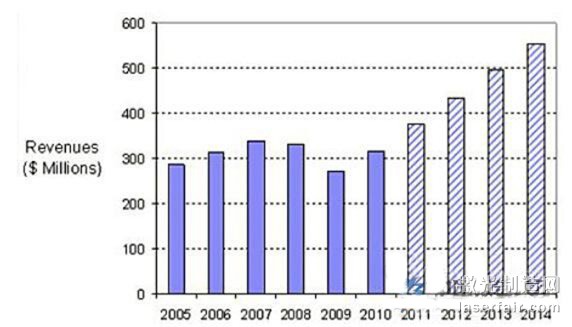 图1 功率在1kW以下各种中红外欧陆娱乐器的市场营业收入