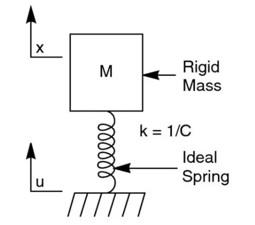 在弹簧——物块系统中,当弹簧末端发生频率为,最大振幅为|u|的正弦运动时,物块M将产生最大振幅为|x|,频率同样为ω的正弦运动。物块运动|x|的振幅与弹簧末端运动|u|的振幅的稳态比即振动传递率T(Transmissibility),而系统的共振频率或固有频率ω0可表示为