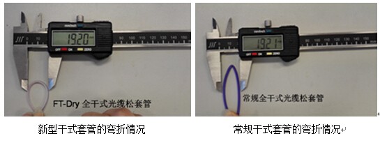除了上述优点,我们开发的FT-Dry全干式光缆比一般的光缆更为柔软,尤其是套管有着更好的抗弯折性能,其最小弯曲半径小于10mm,可直接在接头盒中盘绕而不会弯折,能很好地满足客户在接续操作中对这方面的较高要求。