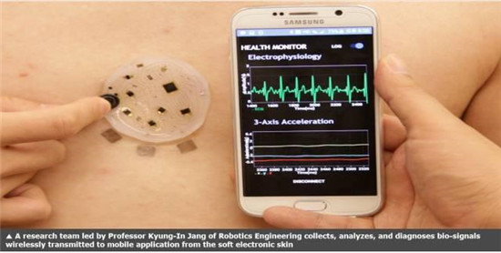 监测心率、呼吸、肌肉运动等健康数据的电子皮肤(图片来源:大邱庆北科学技术院)
