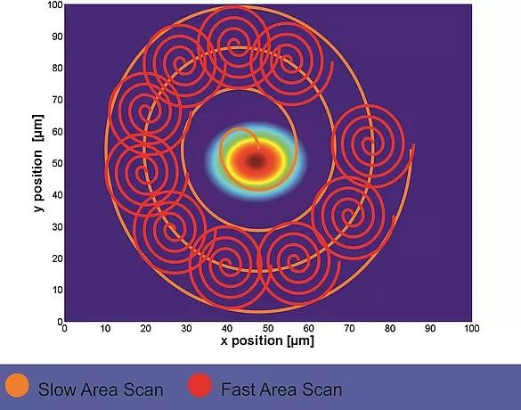 独特之处在于,FMPA的区域扫描选项包括单频正弦和螺旋扫描。这些扫描比传统的光栅或蛇形扫描快得多,因为它们是真正连续的并且避免了传统扫描中使用的停止和启动运动的稳定要求,而且可以选择频率以避免激发结构共振。另外,还可以选择恒速螺旋扫描,能够在螺旋上以恒定密度采集数据。